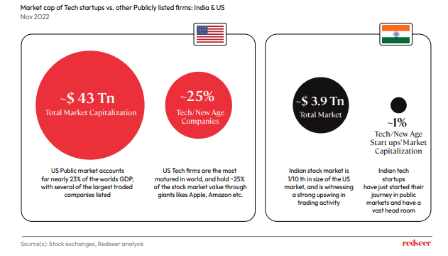 3. India has a significant room for growth in public market capitalisation, especially for Tech/New-Age companies
