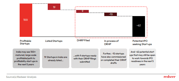 4. In the next five years, India is likely to see 100+ matured, large-scale profitable/path-to-profitability start-ups which leads to a pipeline of 80 potential Tech/New-Age IPOs in the period