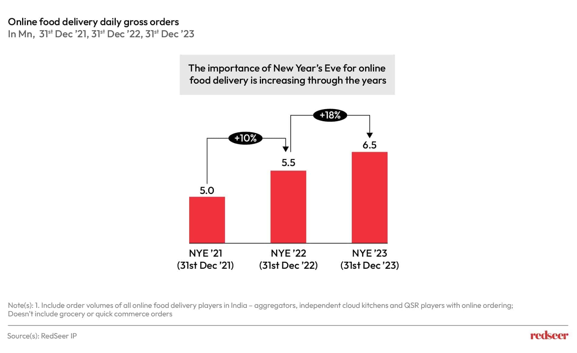This is especially relevant for chain restaurants and cloud kitchens (especially house of brands) from a consumer habit-building perspective. Moreover, customer experiences during these days tend to be sticky, so there is a need for sustained planning and strong execution. 31st December 2023 or New Year’s Eve 2023 (NYE23) was record-breaking for online food delivery in multiple aspects.