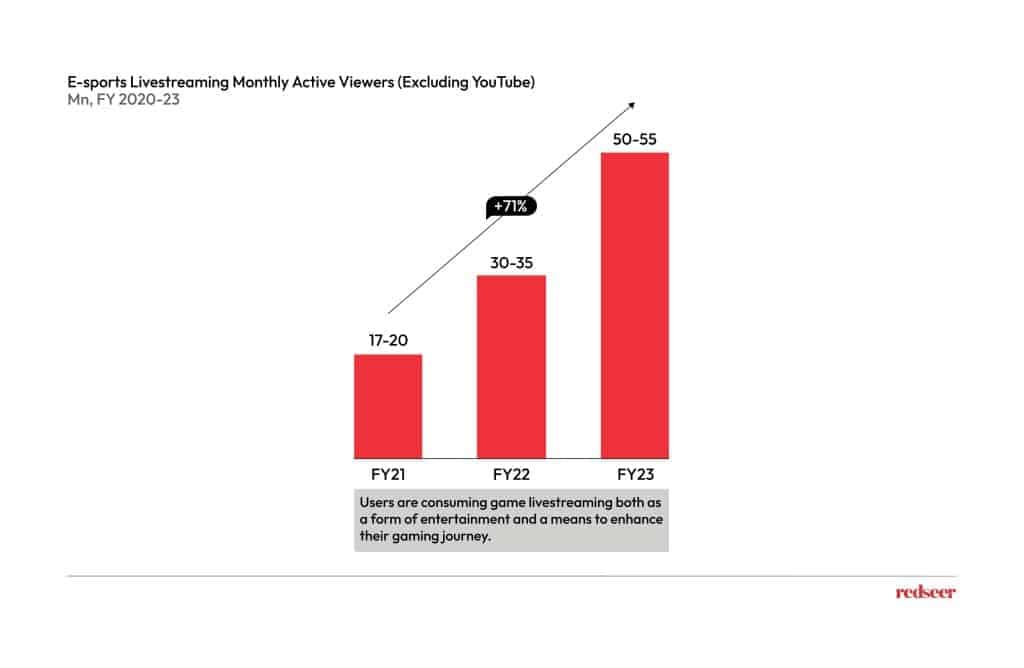 Gamers’ Willingness to Pay (WTP) for in-game experiences has also led to a rise in active livestreaming attendance. Livestreaming provides gamers with the opportunity to both better their skills and be entertained by the best in the business. As a result, pureplay gaming platforms (Loco, Rooter etc) as well as other platforms including YouTube and OTTs attracted an average livestreaming audience size of 25-30mn and 30+ Mn respectively in FY23. It is to be noted that formats across advertising, subscriptions and merchandising were utilized for monetization purposes.