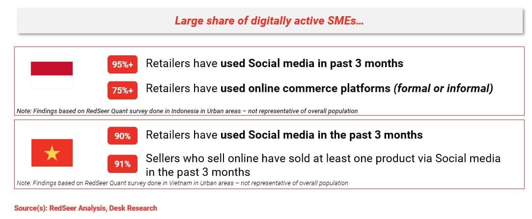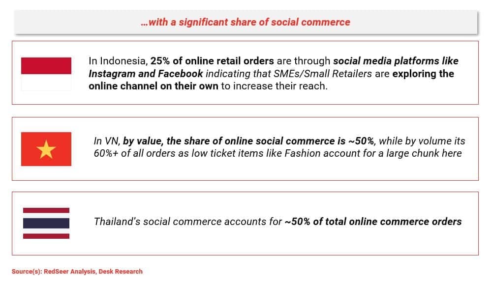 The Seller & SME based in ASEAN countries are highly active on social media platforms. They have been quick to adapt to avenues like FB and Instagram to market and sell their products. This results in a high share of social commerce in most of these markets. Note: We will talk about social commerce in more detail in our subsequent newsletter.
