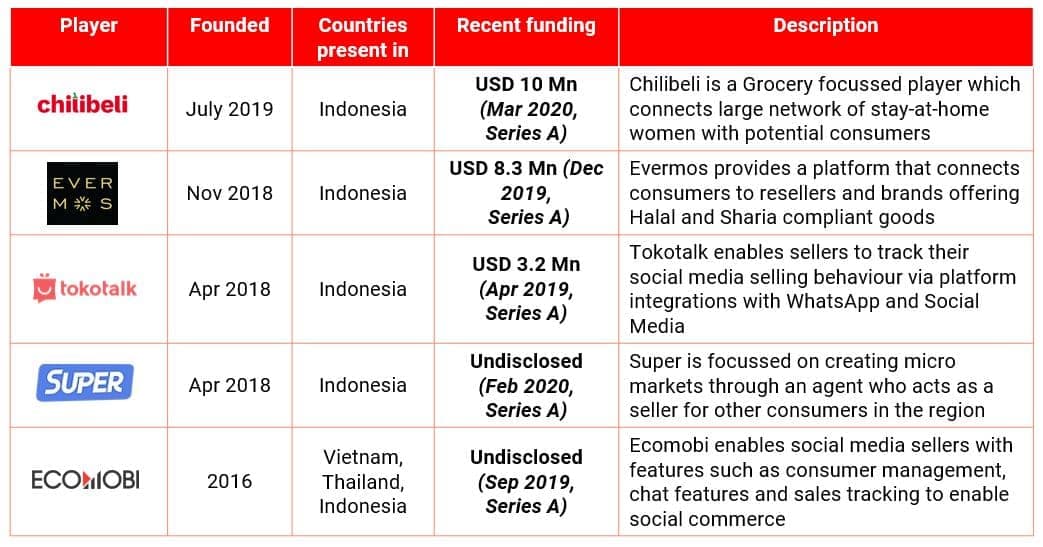 We have also been seeing increased investor interest in the area of late. Indonesia has been a leader here with multiple players having raised funding, accompanied with entry of players such as Meesho. Players like Chilibeli and Super (both having raised funds recently) have noticed more than 100% month on month growth in 2020.