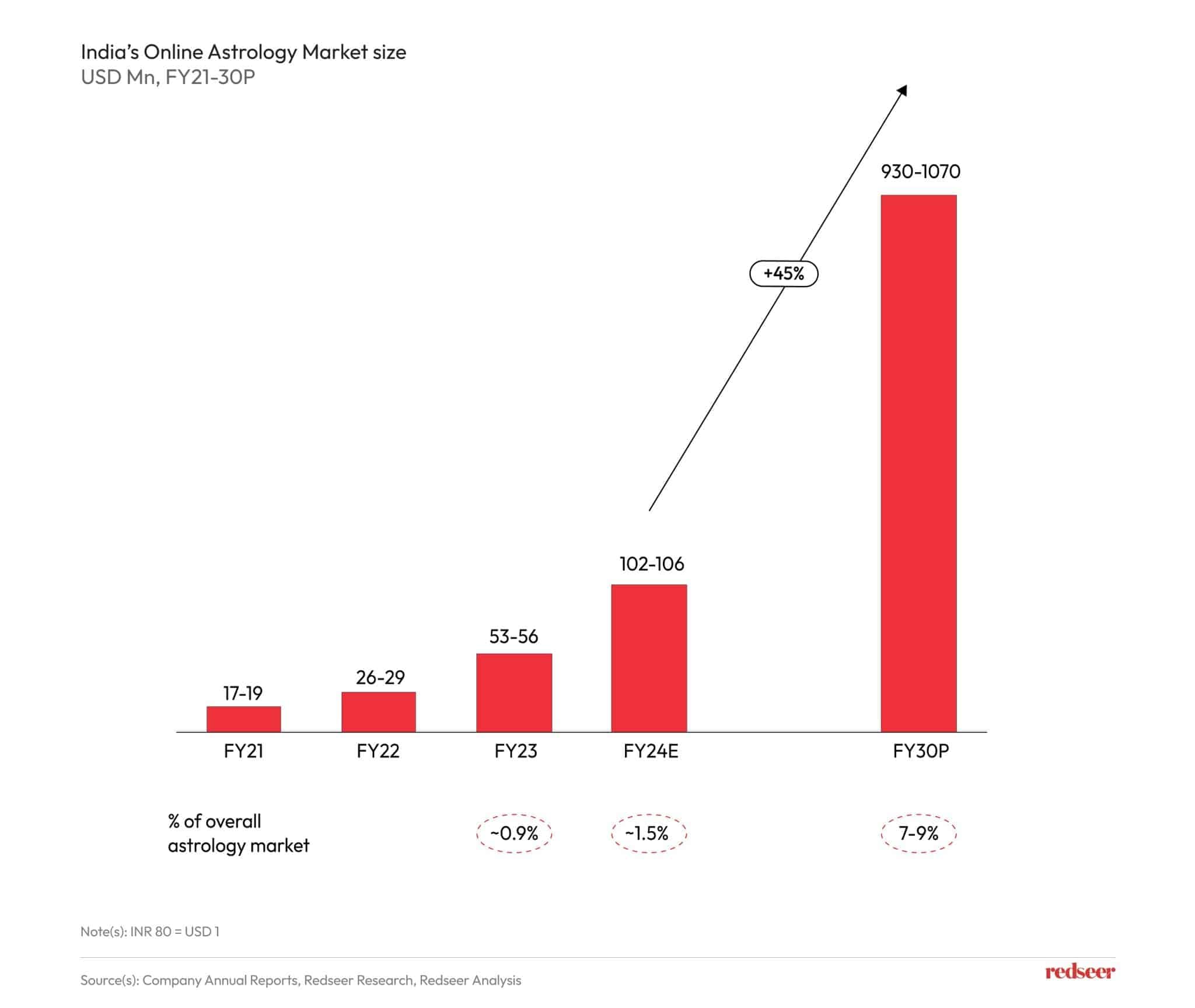 Currently, at USD 102-106 Mn, India’s online astrology market is expected to decuple by FY30