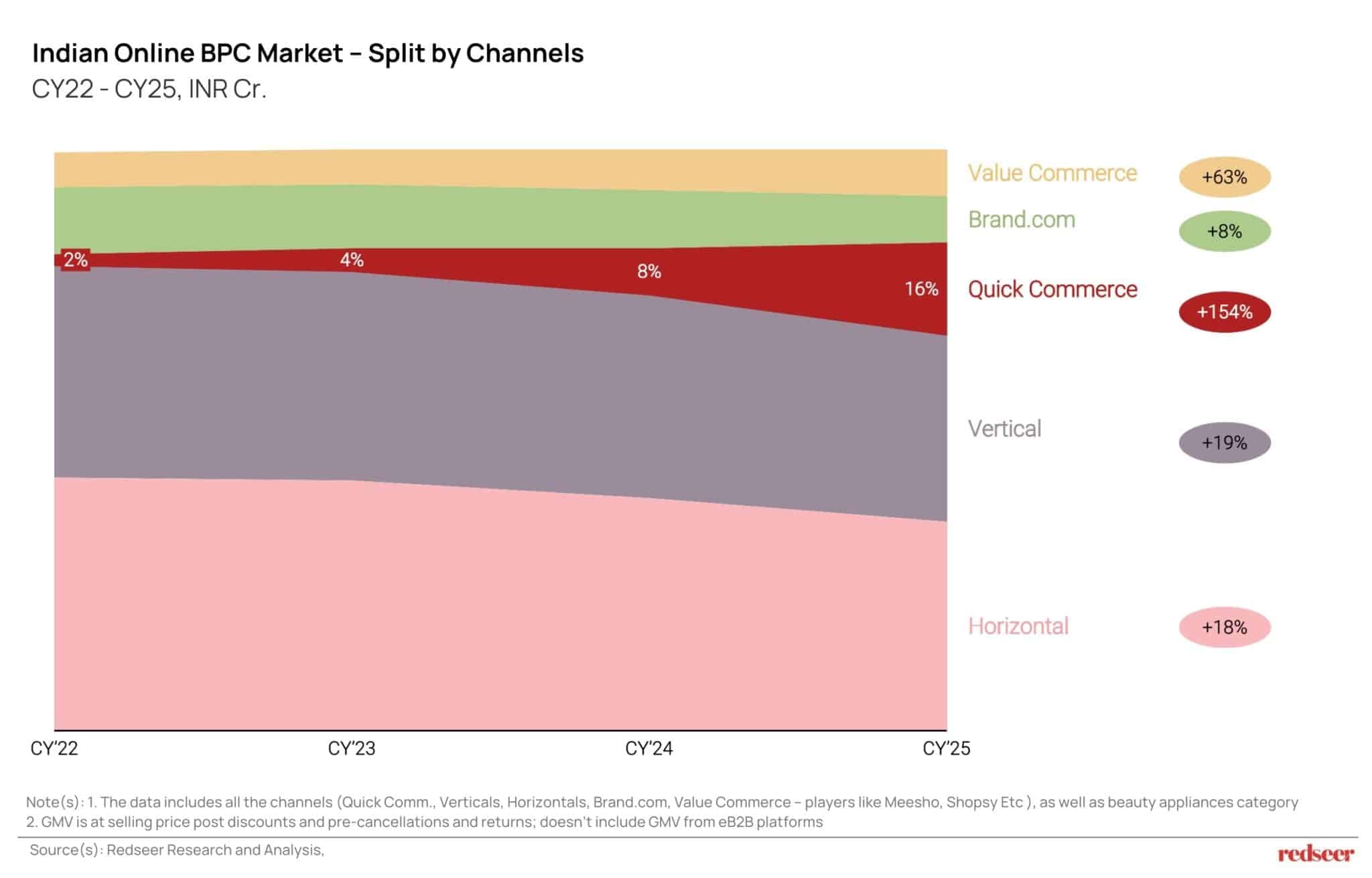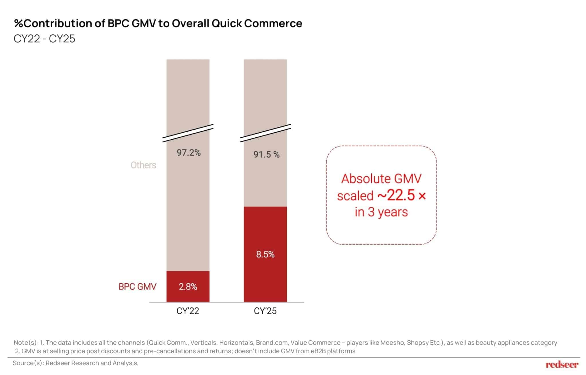 The GMV of Beauty & Personal Care within quick commerce has expanded ~22.5x between CY22 and CY25, marking one of the fastest scale-ups within the ecosystem.