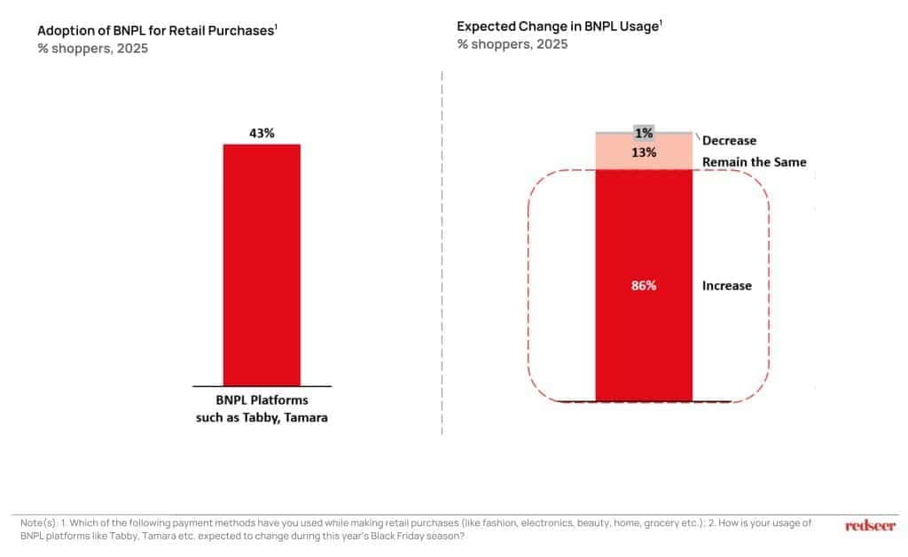 Buy Now, Pay Later (BNPL) is emerging as a key enabler for higher-value purchases this Black Friday. While current adoption remains lower than traditional payment methods like cash, cards, or e-wallets, over 85% of consumers expect to increase their use of BNPL during the season. This surge in planned usage signals significant potential for BNPL to drive sales, particularly for electronics, home, and other big-ticket categories, empowering shoppers to invest in lifestyle upgrades with greater flexibility and confidence.