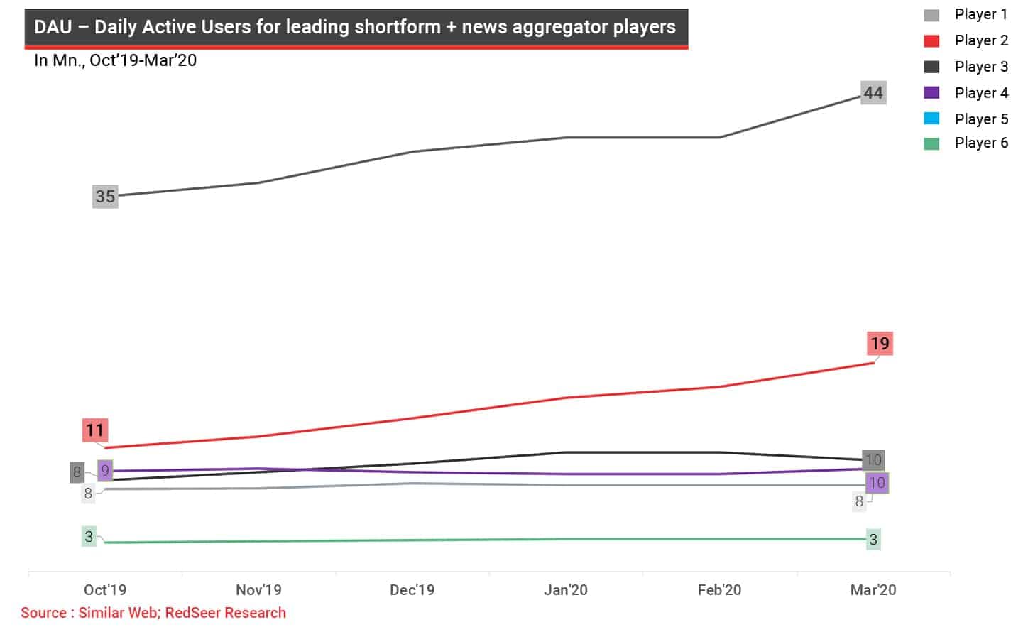 The top shortform and news aggregator platforms have witnessed growth in daily active user growth driven by better content, marketing campaigns and frequent notifications. However, for other platforms, the user growth has been flattish.