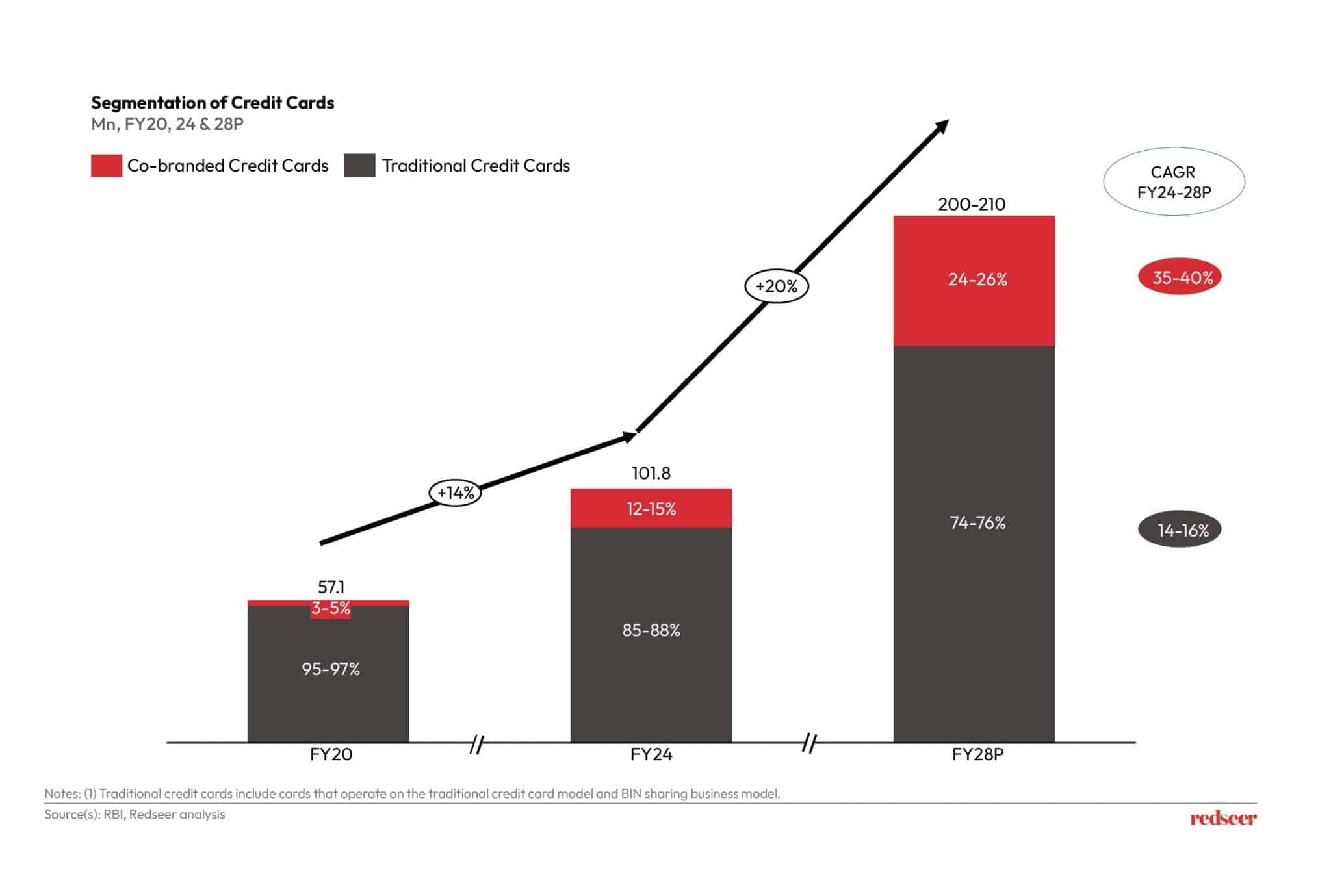In FY24 alone, CBCCs accounted for 12-15% of all credit cards issued, with projections showing they could capture over 25% of the market share by volume by FY28. That’s a growth trajectory of 35-40% CAGR for FY 24-28, compared to a more modest 14-16% CAGR for traditional credit cards.