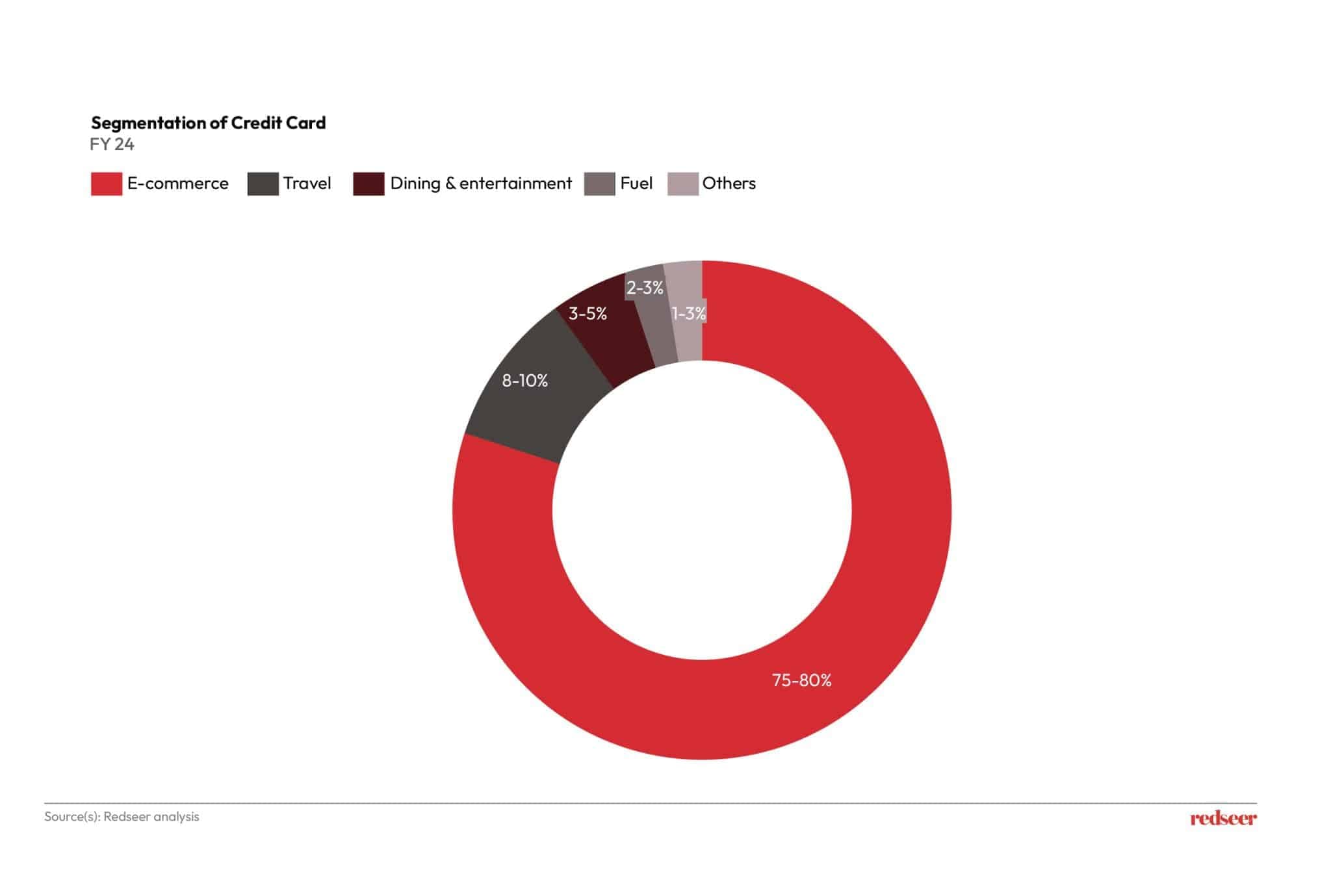 Currently, there are around 70 different co-branded credit cards available, accounting for about 12-15% of the total credit cards in circulation. These cards have gained significant traction, particularly in the e-commerce sector, which dominates the space with 75-80% of all issued co-branded credit cards. The Amazon Pay ICICI Bank and Flipkart Axis Bank Credit Cards together account for around 9 million cards in FY24, becoming staples in the e-commerce experience with exclusive rewards. In travel, cards like the IndiGo HDFC Bank Credit Card offer frequent flyers valuable perks, making them a go-to for travel purchases. Let us now see the segmentation of these cards that would reveal key insights into their market penetration and success factors.