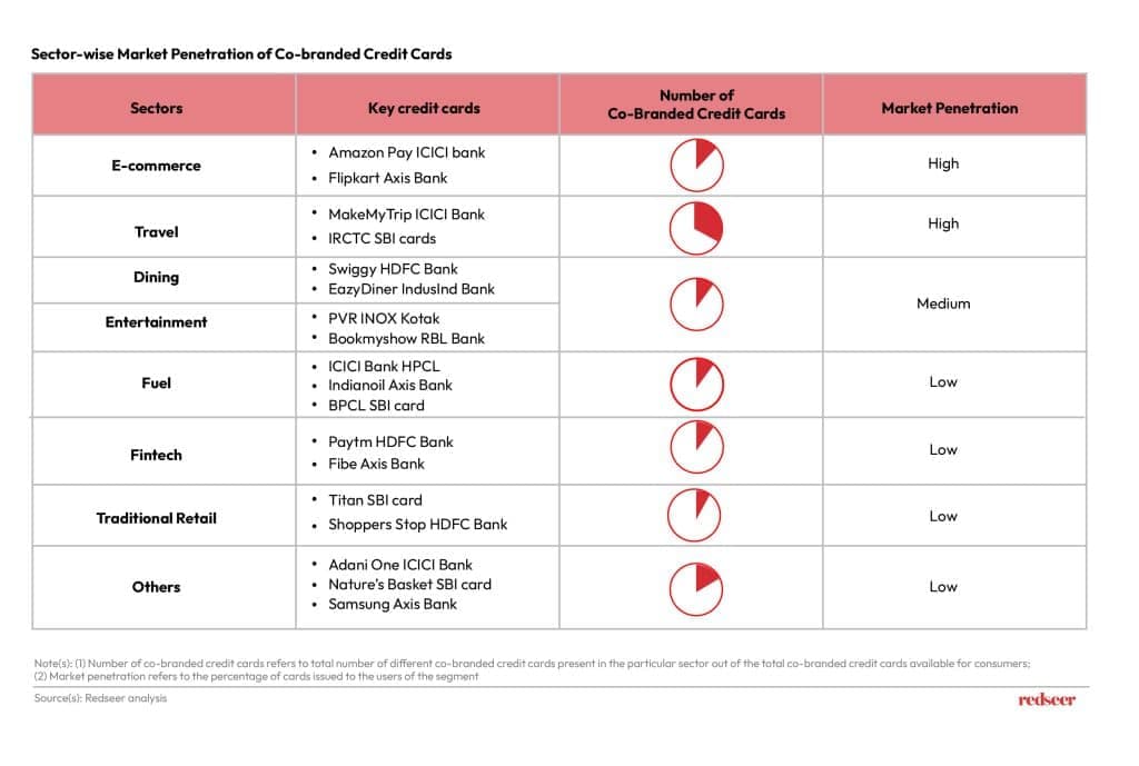 In FY24, eCommerce has the highest co-branded credit cards issued followed by Travel and Dining & Entertainment respectively. Below is the detailed breakup of the same: