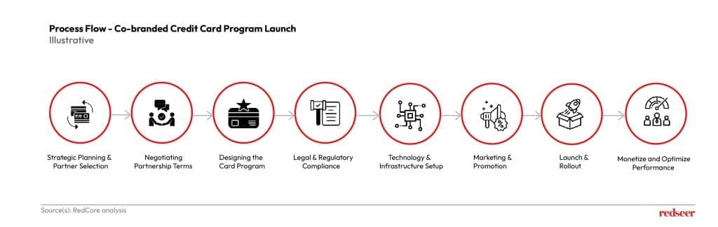 Launching a co-branded credit card involves strategic planning, strong partnerships, and technological innovation. This process flow highlights the key stages for a successful launch and sustained market presence, offering insights into both traditional and modern approaches.