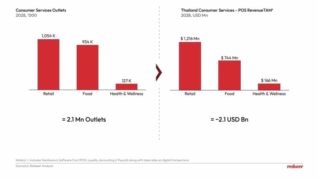 By 2028, Thailand’s expected to have 2.1 Mn such consumer service outlets contributing to ~28% of the Thai economy. Digitizing this key economic engine – is a USD 2.1 BN opportunity.