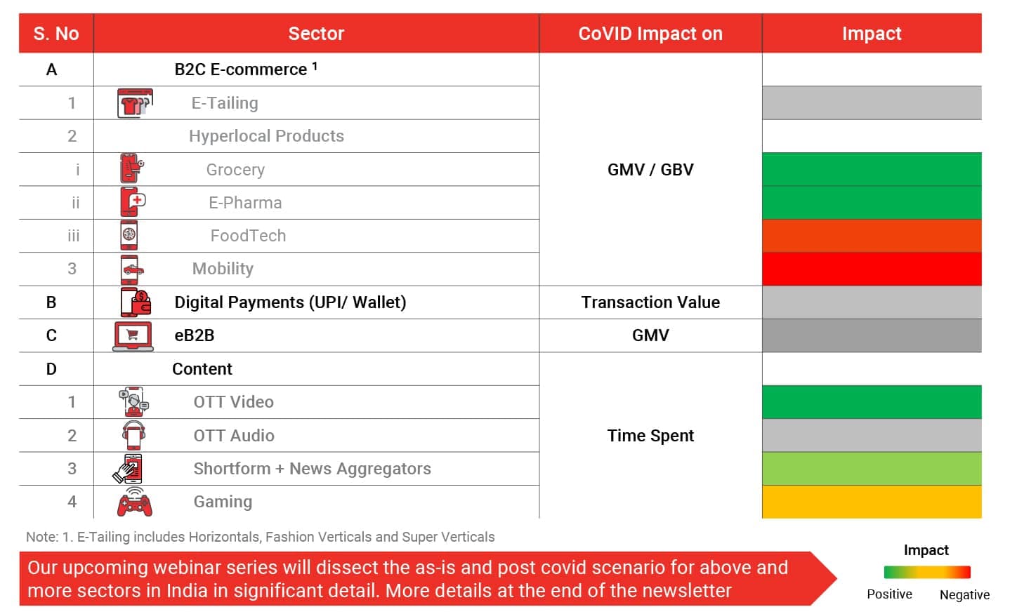 1. How have various Indian internet sectors been impacted by Covid-19?