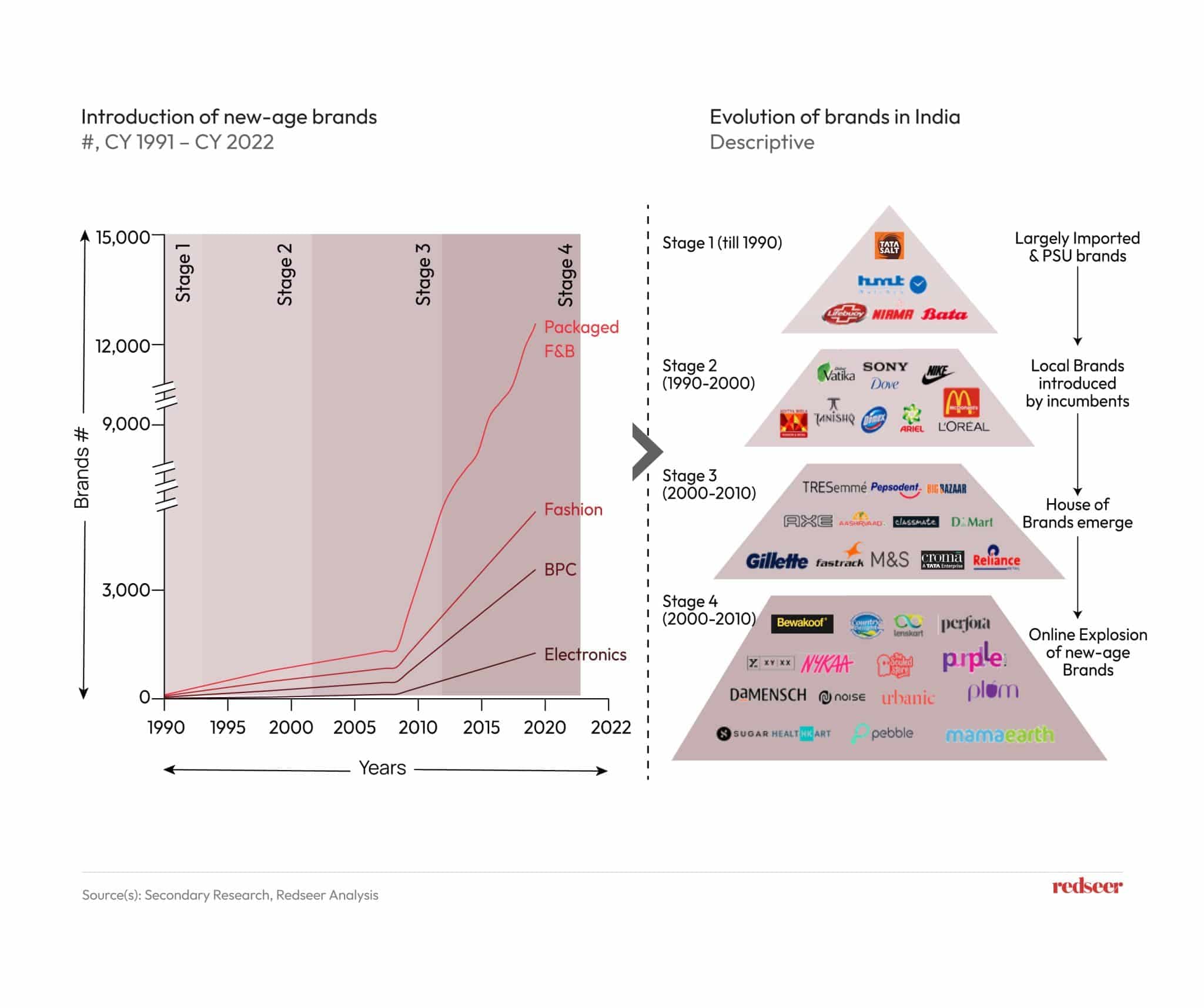 Over the last 3-4 decades, India has seen a massive transformation in consumer brands – from only a few large foreign or public sector undertaking brands across retail categories before the 1990s to having several thousand brands within each retail category. And with the success of online as a channel for retail consumption, most of these brands are online D2C. Online has clear advantages of being more accessible/cheaper (easy to be onboarded on eTailing platforms, low inventory requirement, etc.), of reaching consumers easily (through social media, online ads), and getting instant customer feedback amongst others. Therefore, India will see the number of brands growing exponentially with most of them starting out with online as a preferred channel.
