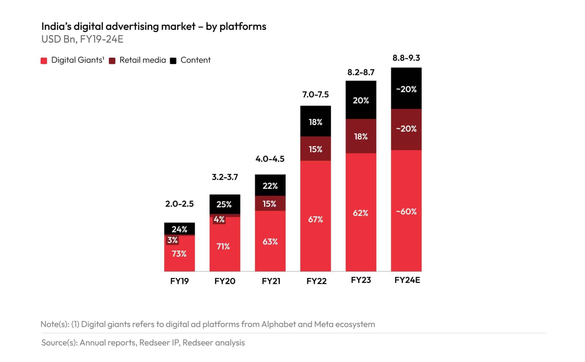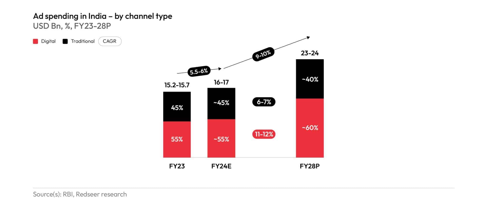 With digital natives shaping the future of advertising at large, brands have a never-before opportunity to address a much larger and more diverse consumer pool. The rise of challenger platforms has defined the growth in digital advertising in FY2024 and expected to remain so in the next years or so.