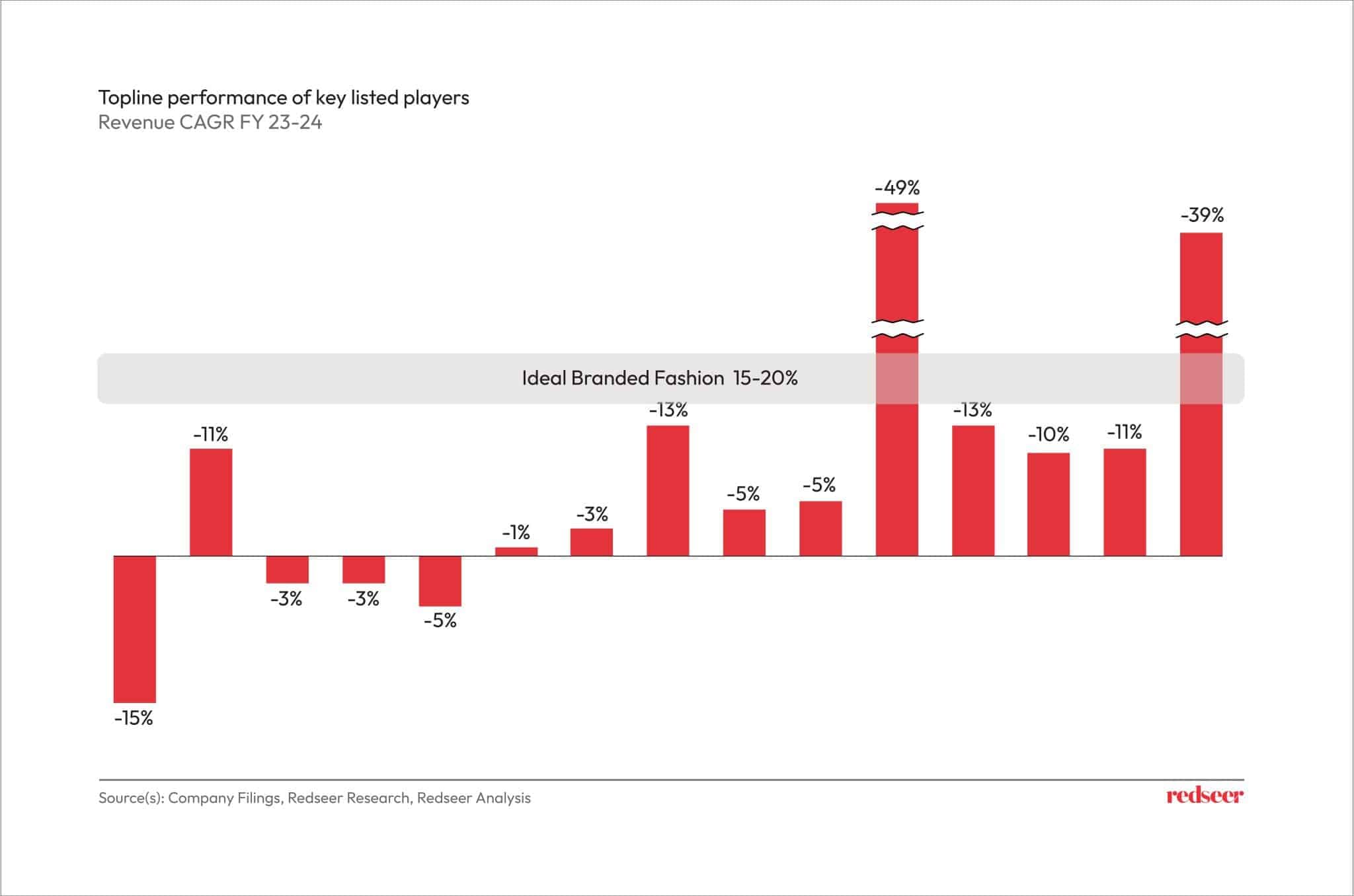The Indian fashion industry, which had a fountain of possibilities, has faced challenges in maintaining consistent growth, with publicly listed fashion players showing uneven performance in FY 2023-24. This stagnation is partly due to a disconnect between consumer demand and market offerings.