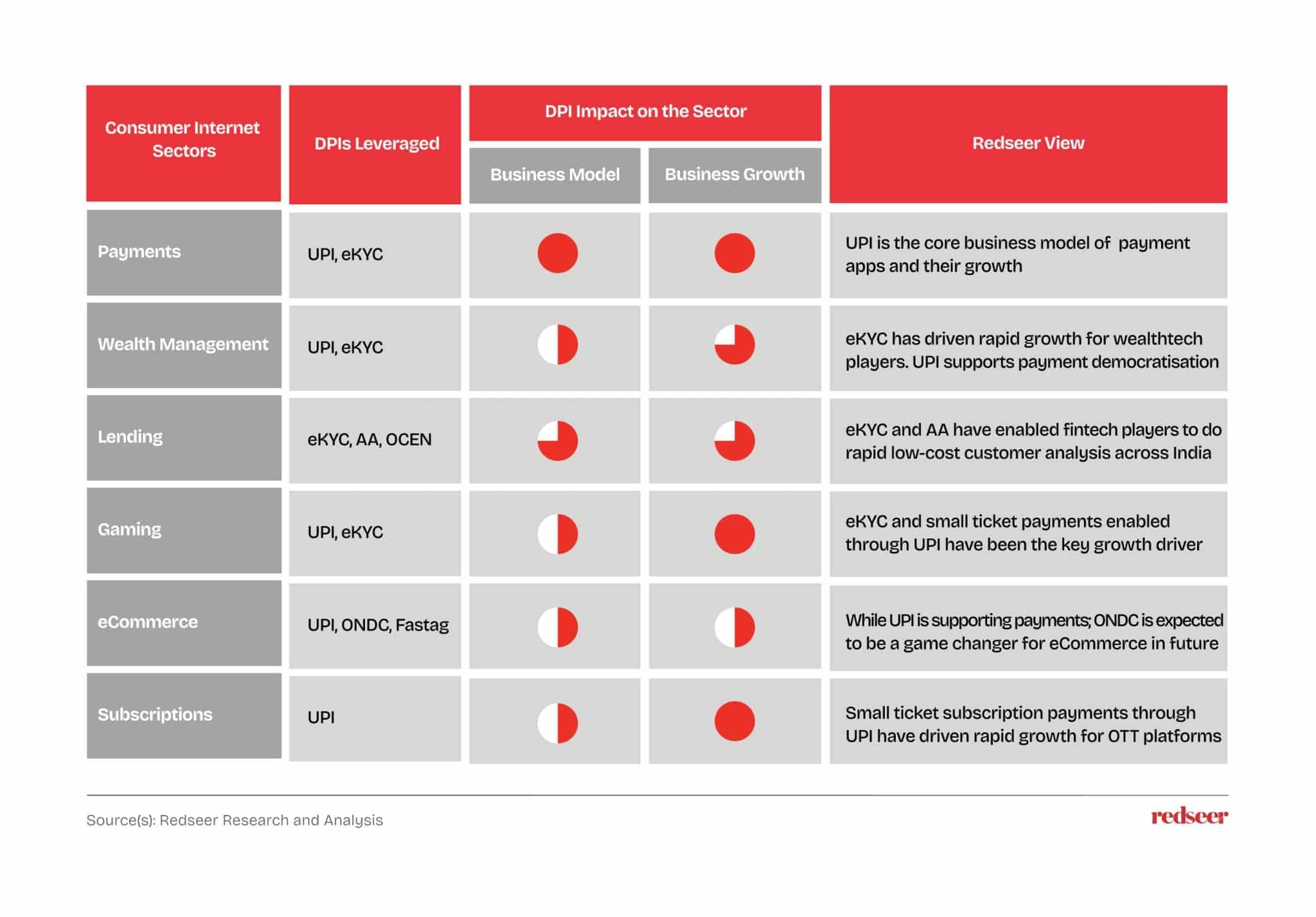 DPIs have played a critical role in the journey of the e-Commerce sector towards achieving a Gross Merchandise Value (GMV) of approximately USD 80 billion in 2022. A significant share of eCommerce transactions now occurs through UPI owing to zero Merchant Discount Rates (MDR) on UPI payments. Mobility accounts for ~65% of the eCommerce payments with Foodtech following closely at ~50% and eTailing at ~35%