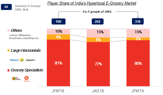 Hyperlocal e-grocery- Market growing at triple digits, with sector specialists continuing leadership