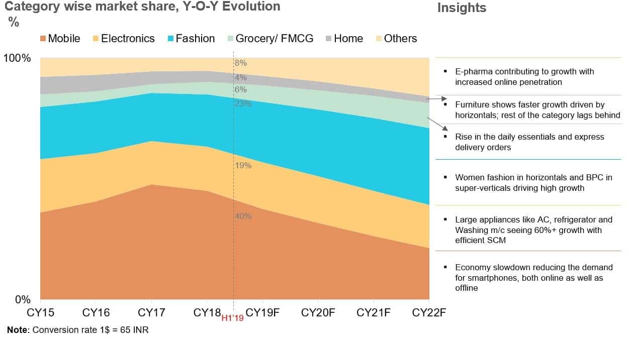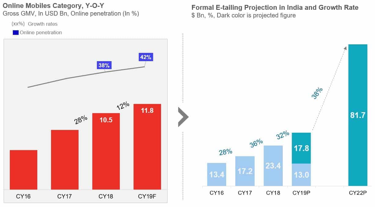 Despite slowing growth of mobiles category, e-tailing firmly on track to grow 32% in 2019 and reach USD ~82 Bn by 2022