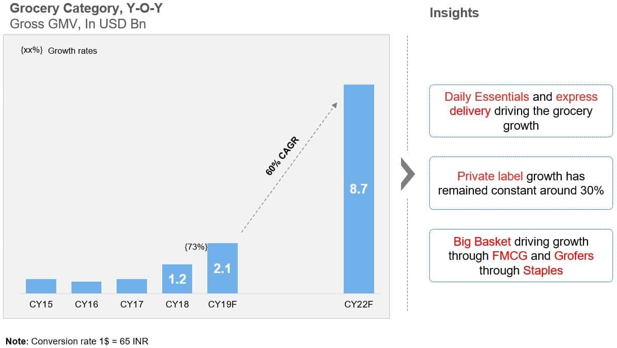 Online Grocery is creating a sticky customer base and expected to grow at 60% CAGR