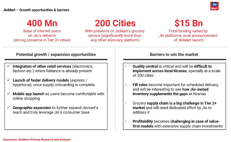 3. Reliance’s JioMart (launched post COVID) has immense potential to disrupt the eGrocery space, but will need to overcome the market barriers