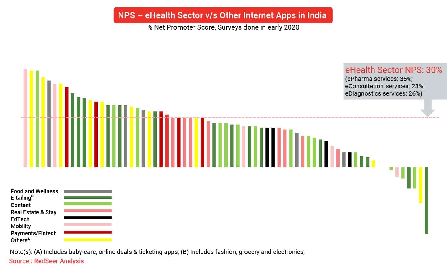 Even before covid-19 struck, eHealth apps were creating significant impact on their consumers, as our consumer research data shows. Where eHealth platforms are having one of the highest NPS in India’s internet sector, as recorded by consumers.