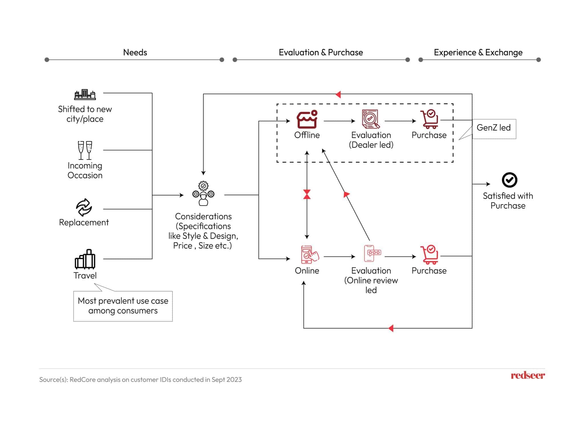 Let’s unpack what a consumer’s purchase journey looks like in this industry. First up, the ‘Need’ stage: Whether jet-setting for business or planning a dream vacation, or just moving cities, travelers have an inherent need for reliable luggage. Moving on to the ‘Evaluate and Purchase’ stage: When it comes to Gen Z and their first luggage purchase, it’s all about the pivotal moments in life: landing a new job, venturing off to college, or making the leap to a new city for studies. Often, they also rely on wedding gifts or hand-me-downs from the family vault. But when it’s time to make their mark, they crave something that blends style with durability. With the world at their fingertips, they research for various options on Amazon and Flipkart for the perfect bag that matches their vibe. Finally, the ‘Experience & Exchange’ stage: Post-purchase, it’s all about consumers’ satisfaction and happiness. Investing in brands that resonate with travelers’ needs and deliver quality can yield long-term returns.