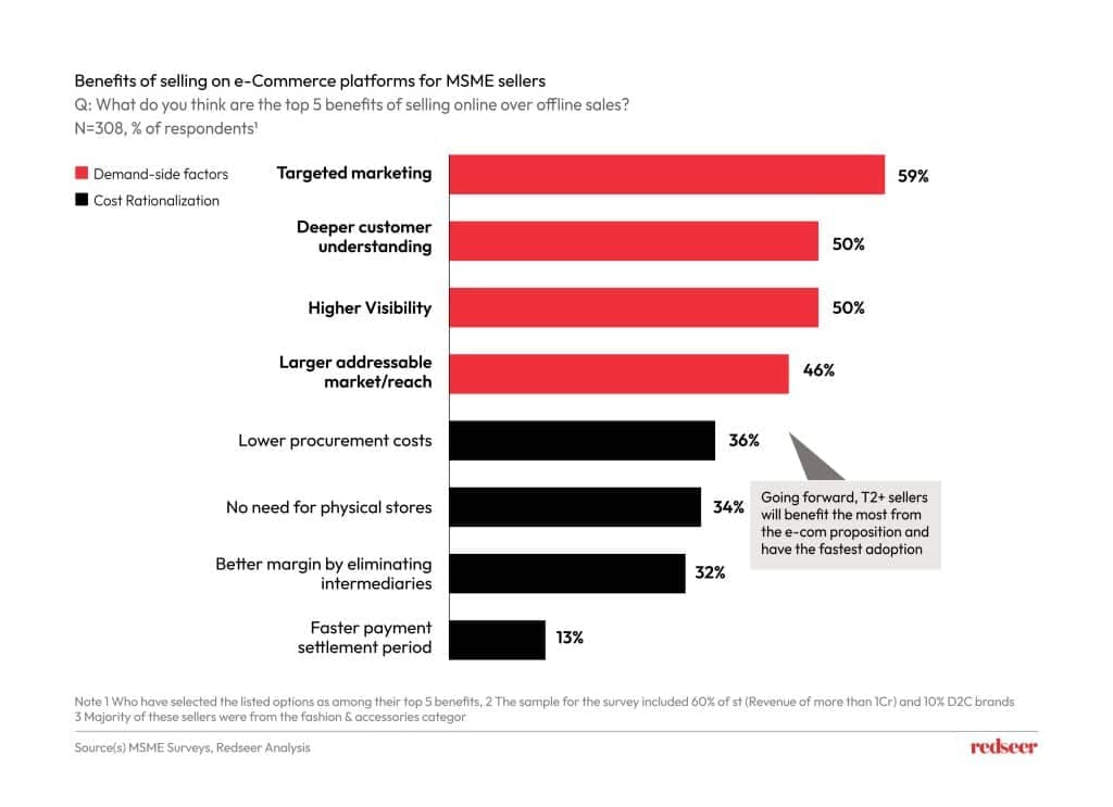 Selling on e-commerce platforms presents a multitude of benefits for MSME sellers. Firstly, it enables them to expand their reach and tap into a broader sales potential, effectively leveling the playing field with larger competitors. These platforms offer advanced marketing tools and data analytics, empowering MSMEs to efficiently target and understand their audience, thus optimizing their sales strategies. Moreover, e-commerce eliminates the need for intermediaries and physical storefronts, resulting in significant cost savings. Additionally, by leveraging economies of scale, MSMEs can rationalize their selling costs, enjoy better profit margins, and benefit from faster payment settlement periods, making it a lucrative avenue for business growth.