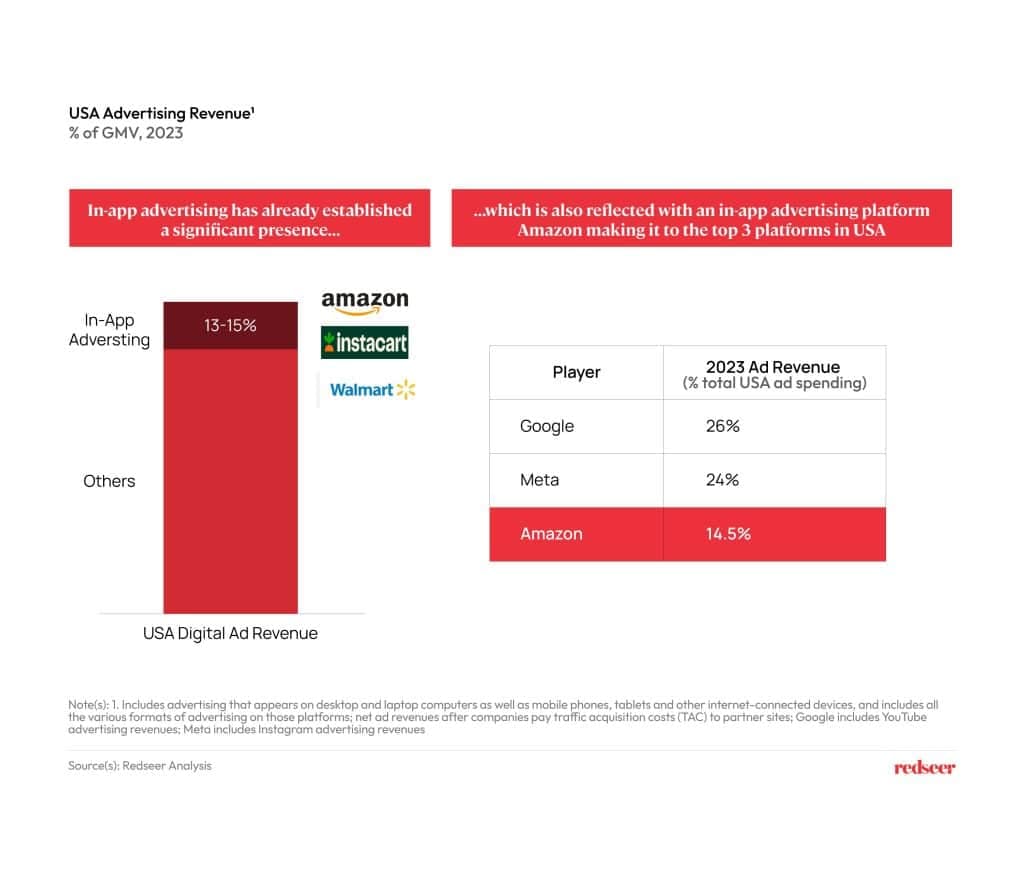 In-app advertising is gaining ground in the USA, as evidenced by Amazon’s substantial $39 billion advertising revenue. Its prominence among top advertising platforms hints at a promising future for in-app advertisements.