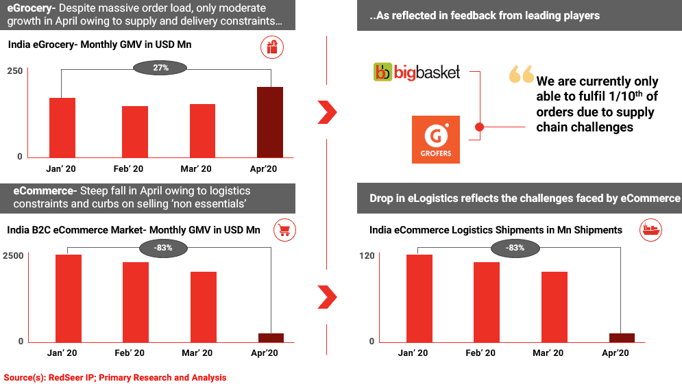 On the order hand, broader eCommerce had a very challenging month in April with only essentials permitted. This reflected in steep volumes drop for eCommerce logistics firms as well.
