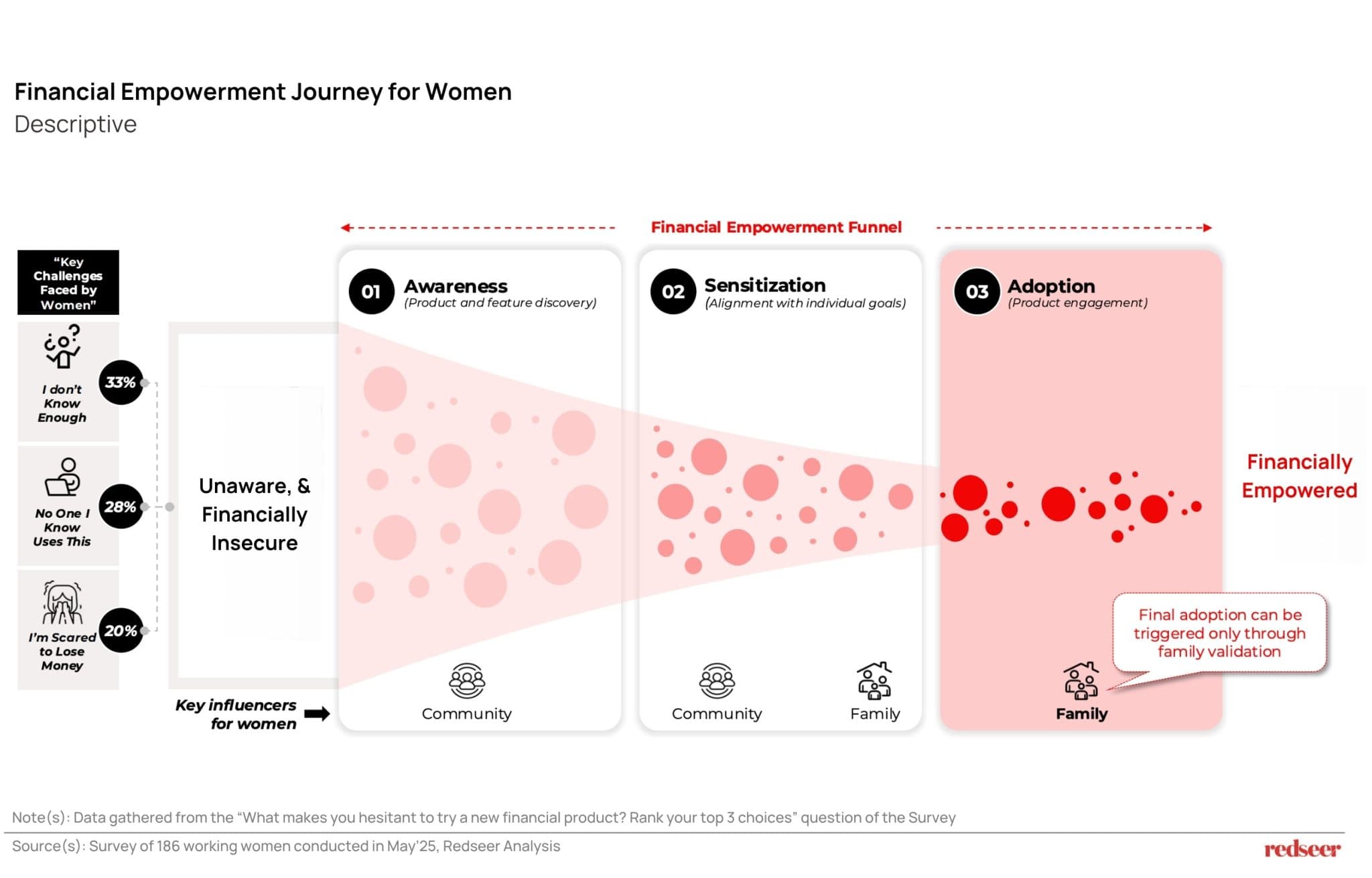 The intent is there. What is missing is the bridge between intent and action. This is not a problem unique to India. Cross-country analysis shows that in developing nations, women’s financial decisions are strongly shaped by community and family, while goal-based planning remains at a nascent stage with weak formal linkage. In developed markets, individual decision-making dominates, and goal-based planning is deeply embedded in platforms. India sits firmly in the first camp, which means the solutions that work in Western markets cannot simply be imported.