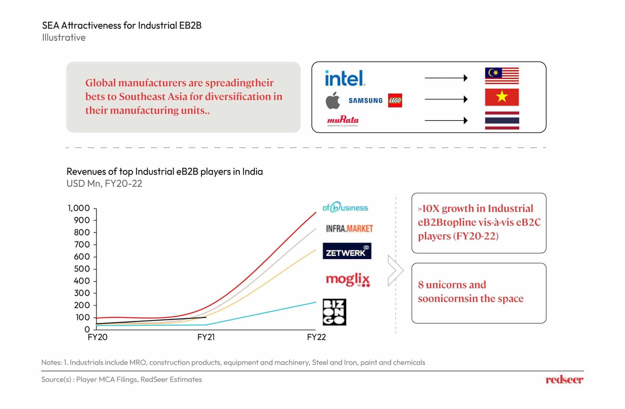 3. Industrial B2B sector holds significant potential in Indonesia. The sector has demonstrated strong growth and created several unicorn + soonicorns in India