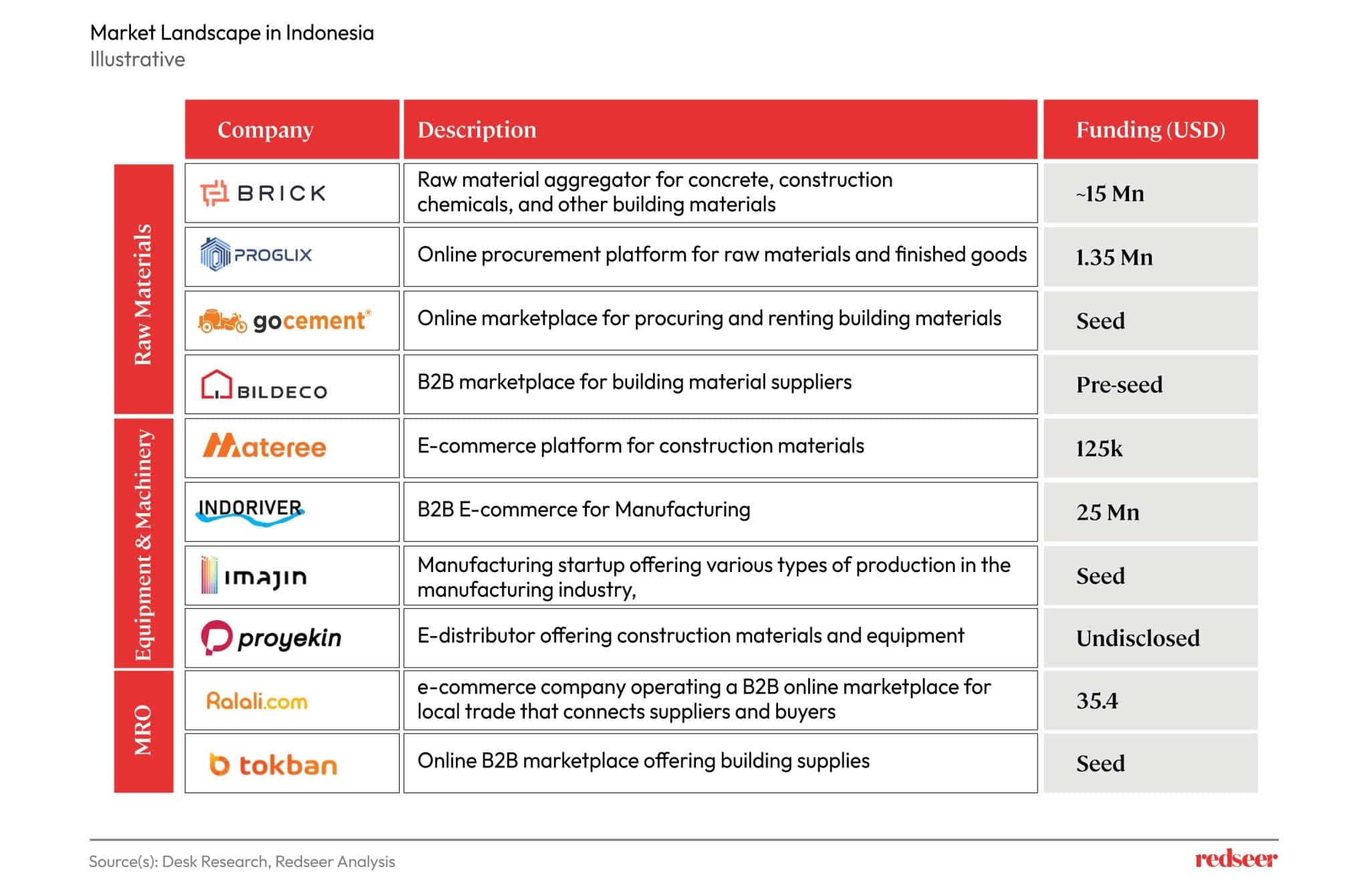 4. Indonesia’s Eb2b landscape is currently in the nascent stages with recent investments in the raw material space