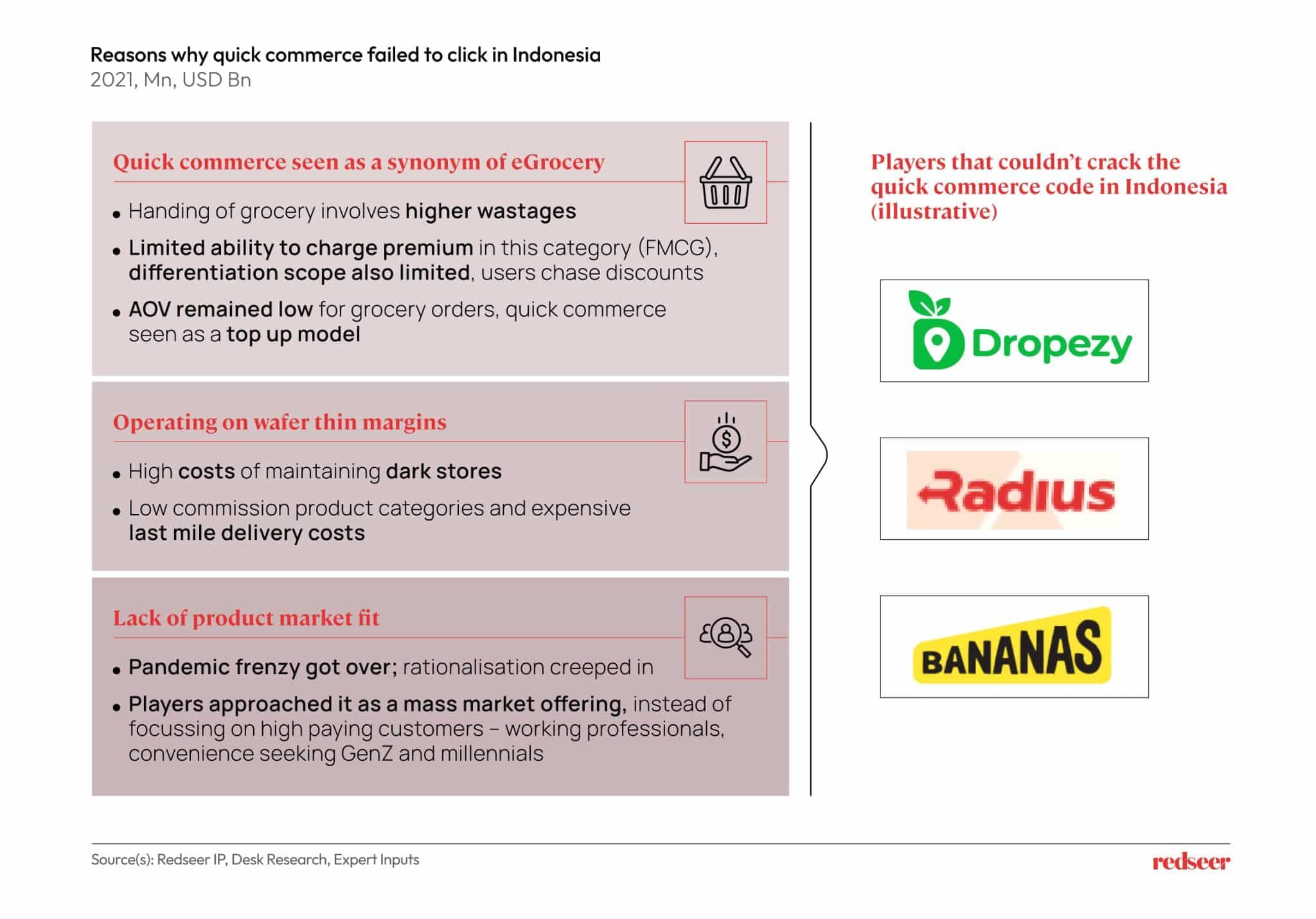 The quick commerce players around the globe have failed due to various reasons the most important of which are quick commerce being focussed heavily on groceries, high supply chain costs leading to wafer-thin margins, and lack of targeting appropriate customer market.