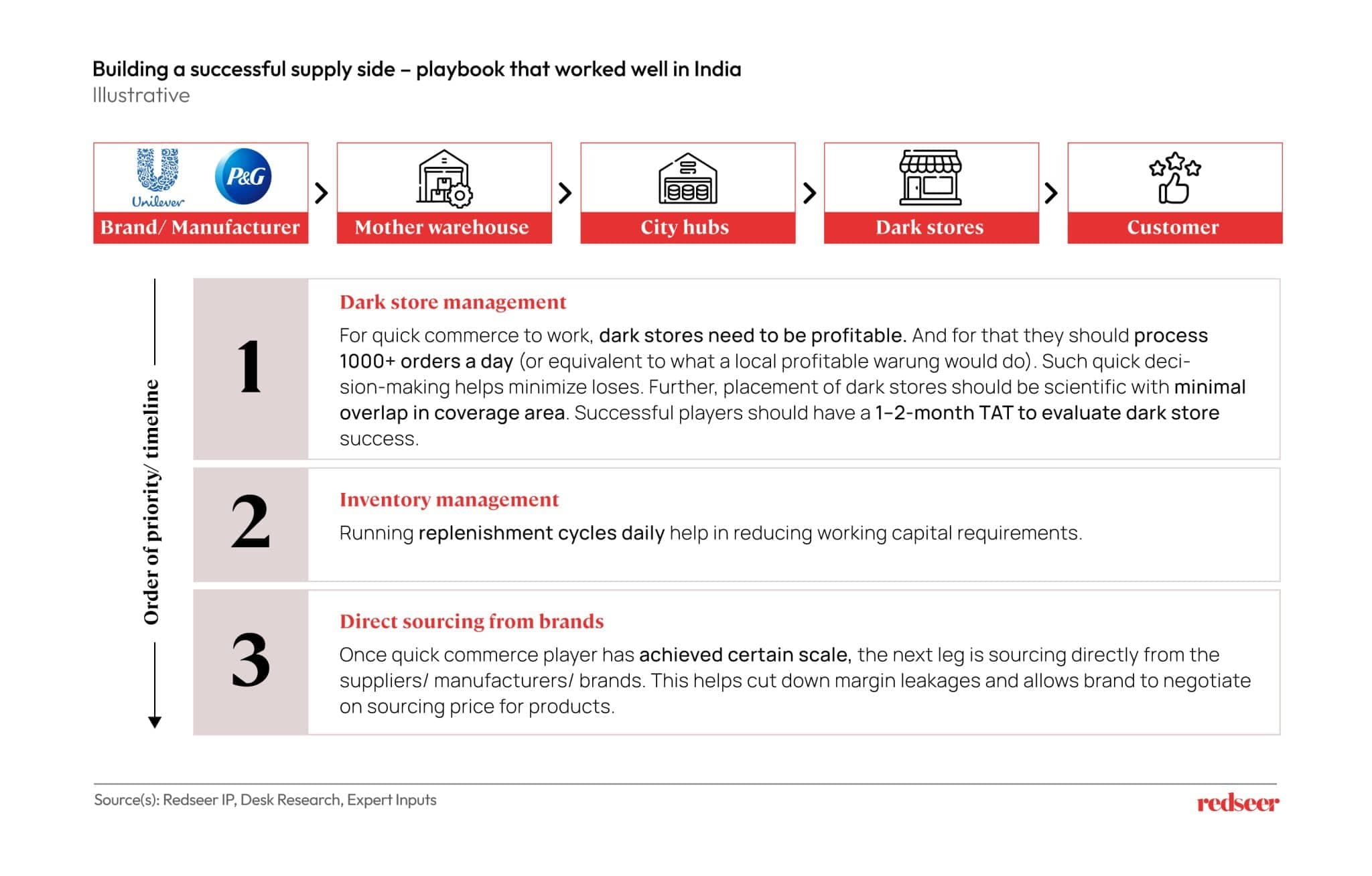 The above chart shows the chronology and critical levers that need to work well within the supply chain of a quick commerce player to become profitable.