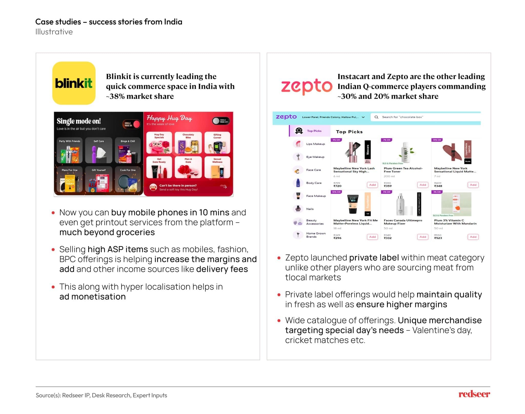 - Quick commerce operates as one of the offerings within the wider umbrella of products which can be horizontal e-commerce, food delivery, ride-hailing, etc.