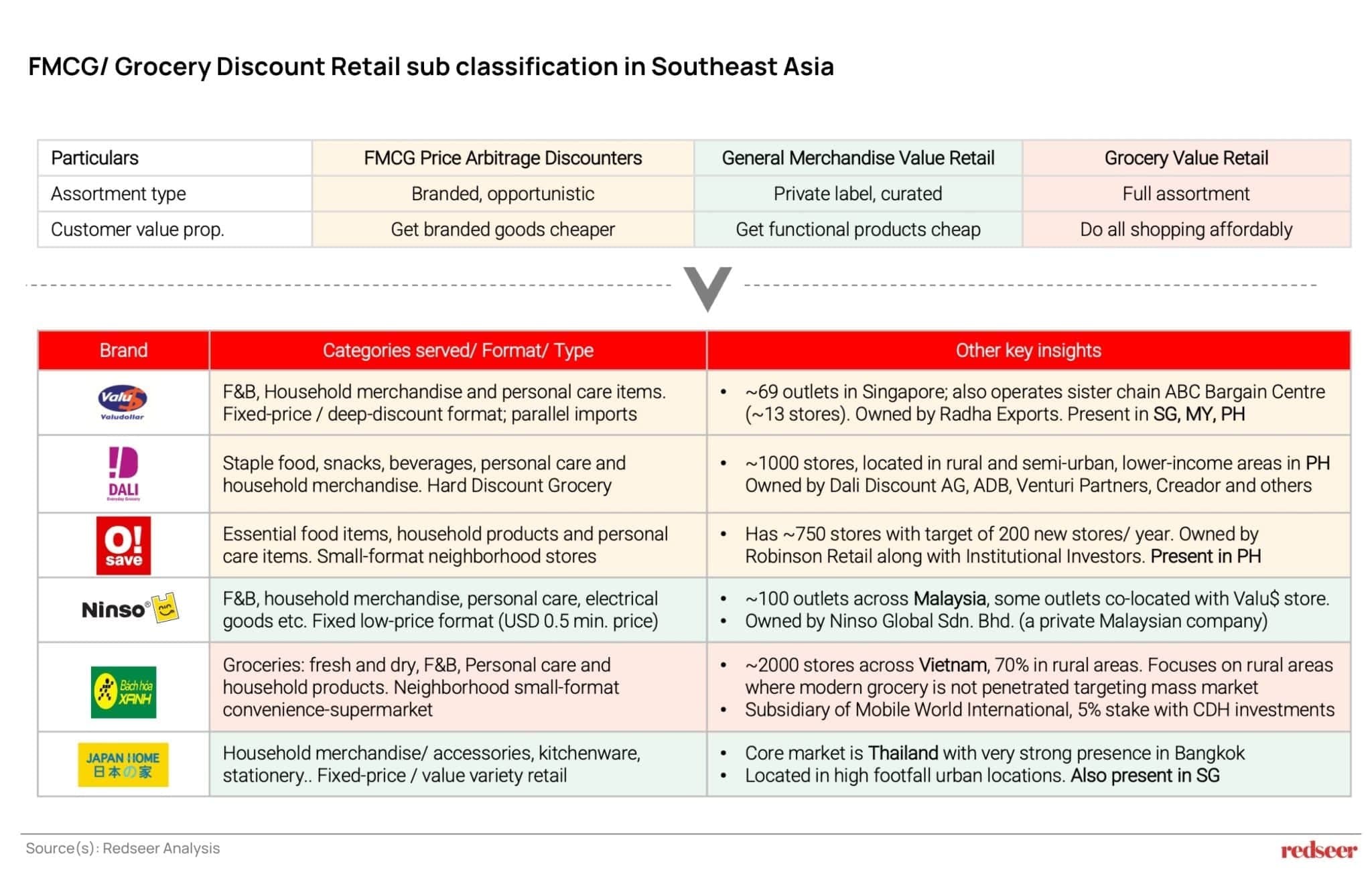 Discount retailers in SEA are varied, some targeting branded bargains, while some looking at groceries