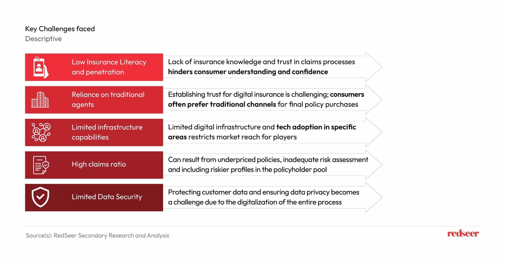 The insurance landscape requires fundamental changes to address critical challenges, including low insurance literacy among consumers, emphasizing the need for robust education initiatives. Additionally, there’s a pressing demand for enhancing digital infrastructure capabilities to expand outreach effectively. Furthermore, the insurtech industry must grapple with high claims ratios, necessitating innovative risk assessment models and improved underwriting practices to ensure long-term sustainability and competitiveness in the insurtech space.