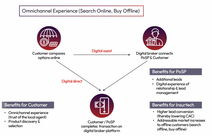 Omnichannel in insurance is a key innovation that has yet to emerge in India, which will enable consumers to find insurance across all touchpoints. Digital models have the potential to evolve into an omnichannel experience for the customer, while creating a winning proposition for the agent & broker. Already, the willingness of consumers to search online and buy offline is evident.