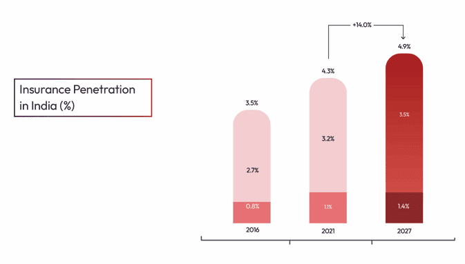 1. Digital insurance in India is a story that is just getting started. Currently, India’s insurance penetration stands at 4.3% – leaving significant headroom for growth compared to global standards