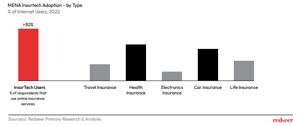 Insurtech’s surge into prominence comes at a time when adoption of such services is already at 30%. The market is driven by car & health insurance which are the key revenue drivers given GCC regulations. This sets the bedrock for a strong growth trajectory within an already thriving fintech domain.