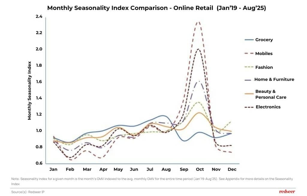 India’s online retail landscape is evolving toward a more balanced demand curve, but Mobiles and Electronics still dictate the rhythm of the festive season. Winners will be those who can reengineer seasonality—creating demand in low months, sustaining engagement in stable categories, and managing festive peaks without disruption.