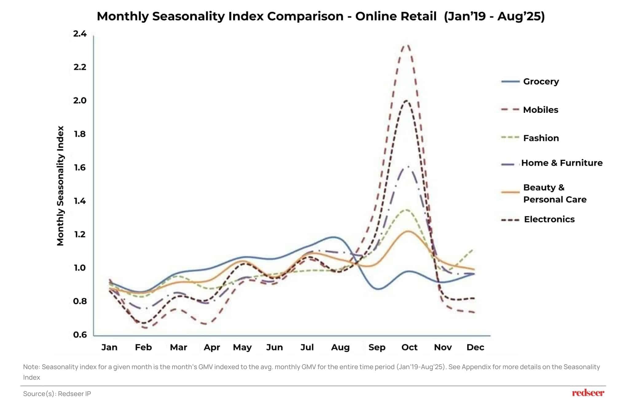 India’s online retail landscape is evolving toward a more balanced demand curve, but Mobiles and Electronics still dictate the rhythm of the festive season. Winners will be those who can reengineer seasonality—creating demand in low months, sustaining engagement in stable categories, and managing festive peaks without disruption.