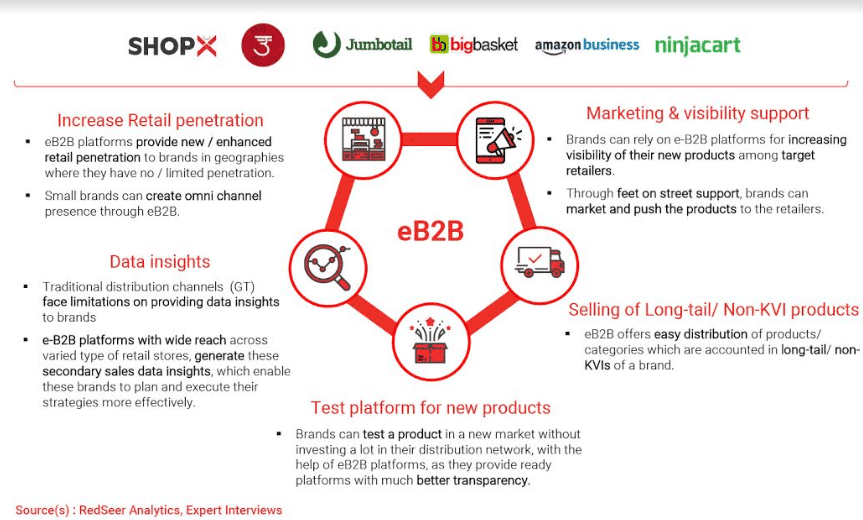 e–B2B also support brands in increasing their direct retail reach and provides a platform for test launch of new brand and product in market.