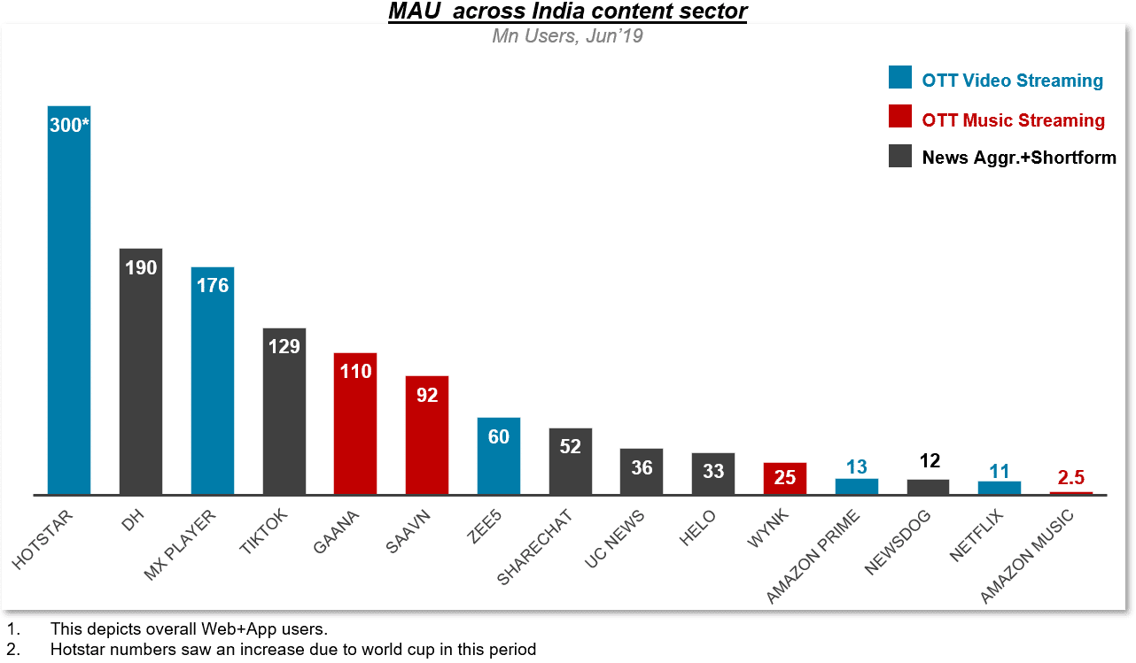 Hotstar has been leading the Indian content sector followed by Dailyhunt