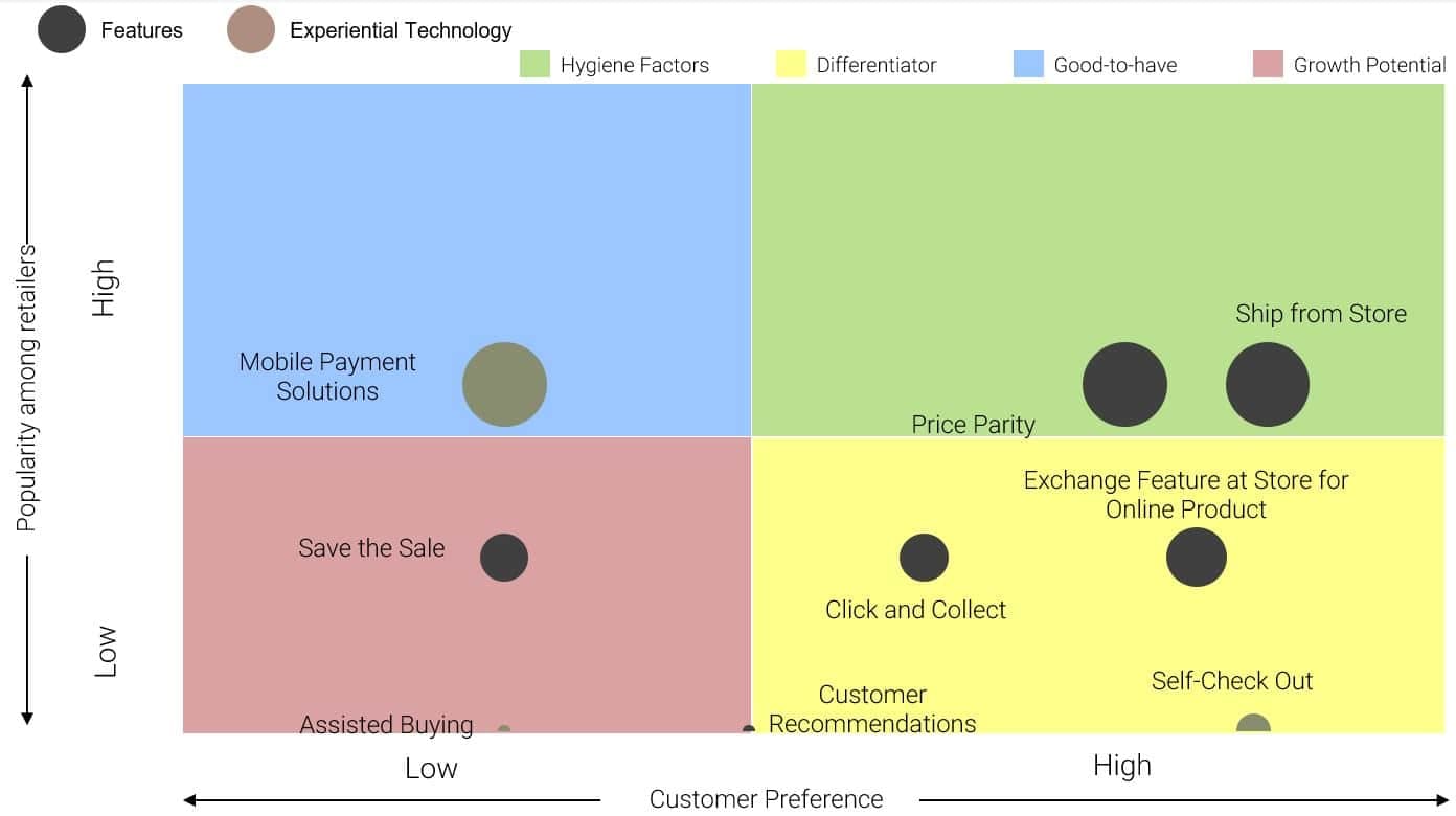From an experience level, features like virtual mirrors, empower customers to get a look and feel of the product even without trying it on, while assisted buying, facilitated by store personnel with devices that enable viewing previous purchase history, add largely to the in-store shopping experience of the customers.