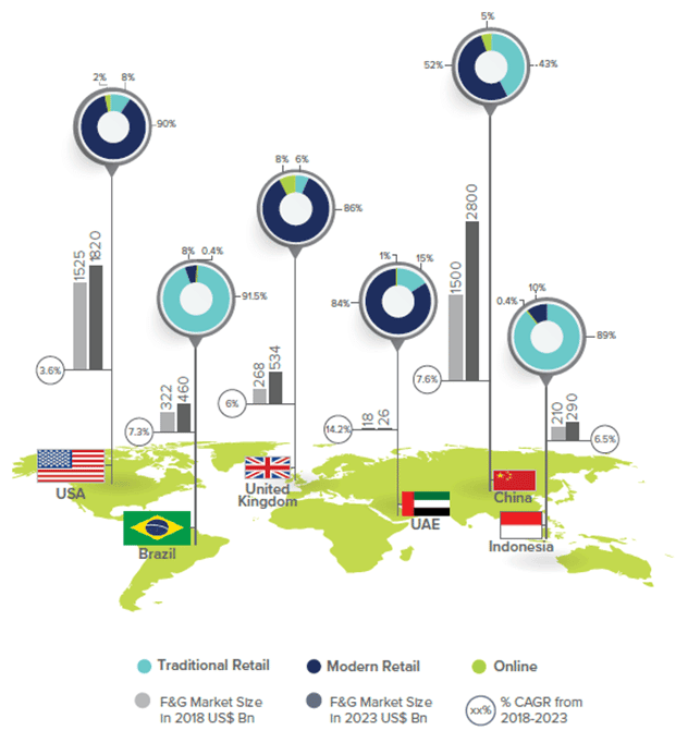Modern retail formats have marked India’s F&G retail landscape for over nearly three decades. The sector, however, has witnessed laggard growth owing to fragmented supply chain, distribution, limited investments in cold storage and warehousing.
