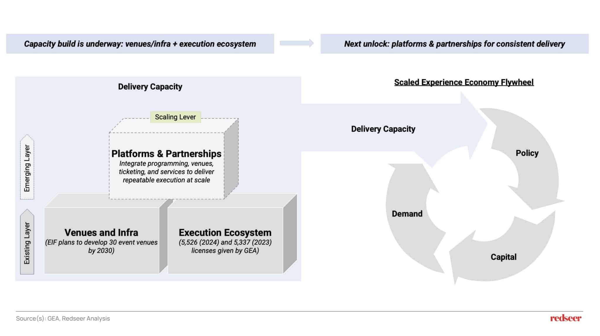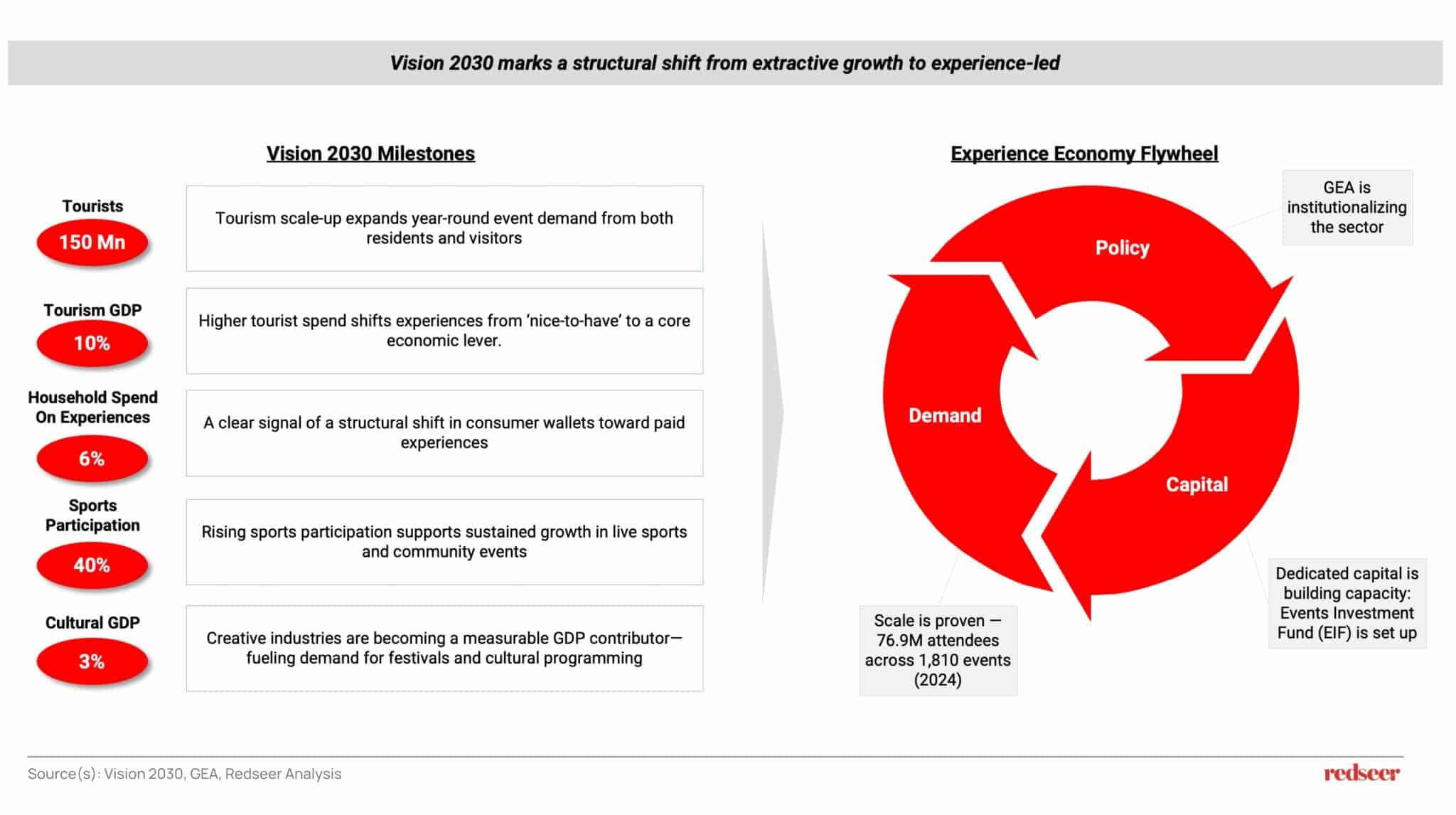 With demand expanding and capacity investments underway, the next phase of growth is likely to be shaped less by “more events” and more by how consistently the ecosystem can deliver quality at scale. Supply-side capacity is building through venues and infrastructure, with EIF planning to develop 30 event venues by 2030, and through a broader execution ecosystem, reflected in the increase in entertainment licenses issued by the GEA (5,526 in 2024 vs. 5,337 in 2023). The key unlock now is integration through stronger platforms and partnerships that bring together programming, venues, ticketing, and delivery services. This is where collaboration becomes critical: tighter coordination across stakeholders can reduce friction, improve predictability, and elevate customer experience, enabling the sector to scale sustainably without losing reliability and quality.