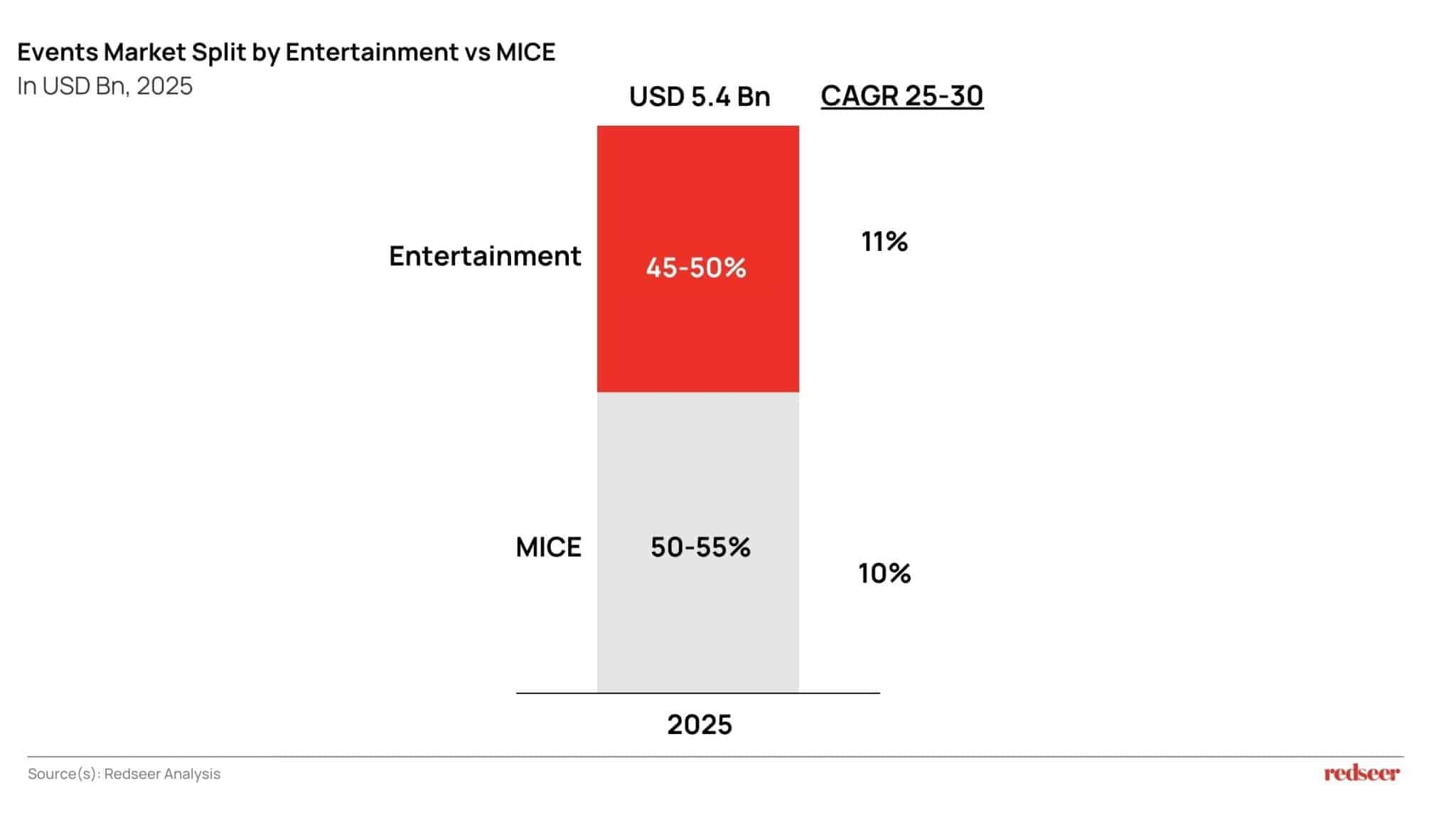 As the sector matures, it is useful to separate the opportunity into two large markets: MICE and entertainment. In 2025, MICE is expected to account for a slightly larger share of spend (around 50–55%), with entertainment contributing roughly 45–50%. Both markets are expected to grow strongly over 2025–2030, with MICE at ~10% CAGR and entertainment marginally higher at ~11%. The growth drivers, however, differ. MICE growth is supported by increased corporate activity, rising international business engagement, and a stronger pipeline of conferences and exhibitions as Saudi expands its role as a regional business hub. Entertainment growth is driven by more frequent large-format programming, increasing variety across music, sports, and family experiences, and expanding venue and city-level calendars that support repeat visitation.