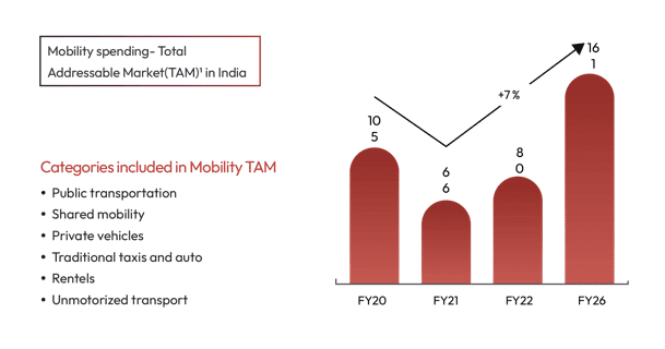 The mobility market in India is poised for an era of immense growth. Since the pandemic-inspired dip witnessed in 2021, the market has been steadily growing. The Total Addressable Market (TAM) in India is expected to witness a steady 7% growth into 2026, in line with the overall trend across Asia as well as overall economic growth.