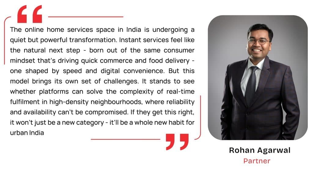 India has always been a market of many Indias, diverse in income levels, lifestyle, and digital readiness. This diversity makes it both one of the most challenging and rewarding markets for products and services. The emergence of the Instant Economy is a response to a new kind of demand: one that values immediacy, reliability, and seamless service. Quick commerce was the first to unlock this space, reshaping how consumers access everyday products. Now, Instant Home Services is stepping into the spotlight, offering similar convenience in entirely new contexts. While quick commerce has already proven its staying power, the Instant Home Services category is still at an inflexion point. How this market unfolds, what frictions and opportunities lie ahead, and how stakeholders navigate its complexity will define the next chapter of India’s service evolution.